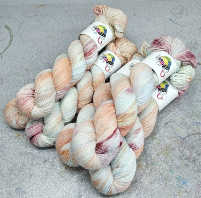This listing is for one skein of approx 100 gram hand-dyed yarn | 75% SW Merino, 25% Nylon | 4 Ply Sock | 425m (463 yds)/100g