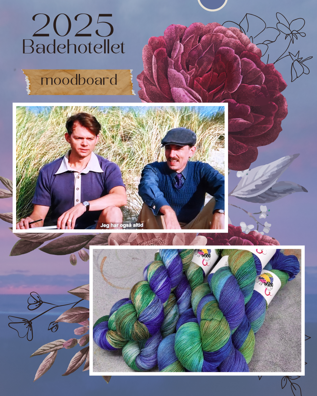 Dagens garnfarve væver netop disse elementer sammen: grønne nuancer inspireret af marehalmen, dybe lilla toner og kølige blå strejf.