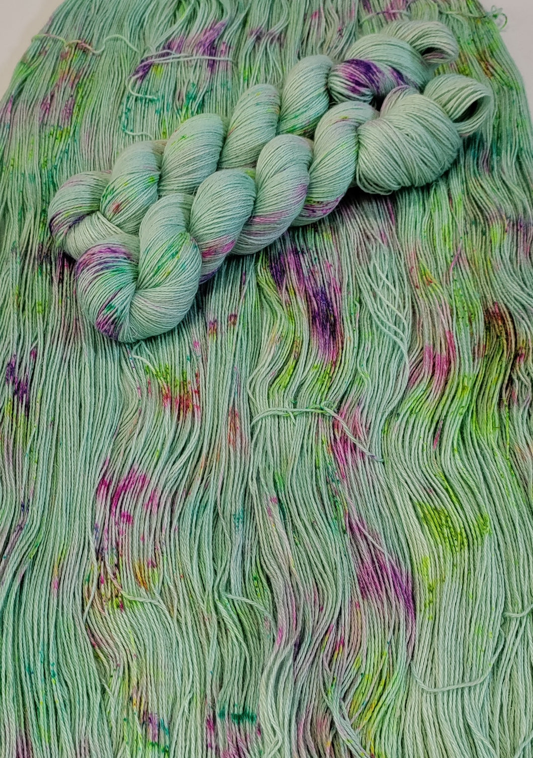 This listing is for one skein of approx 100gram hand-dyed yarn | 50% Baby Alpaca, 25% Linen, 25% Silk | 3 Ply Sock Fingering | 400m (438 yds)/100g