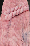 Blushing is a pale salmon-colored yarn with lovely speckles in purple, plum, pink, and neon green.