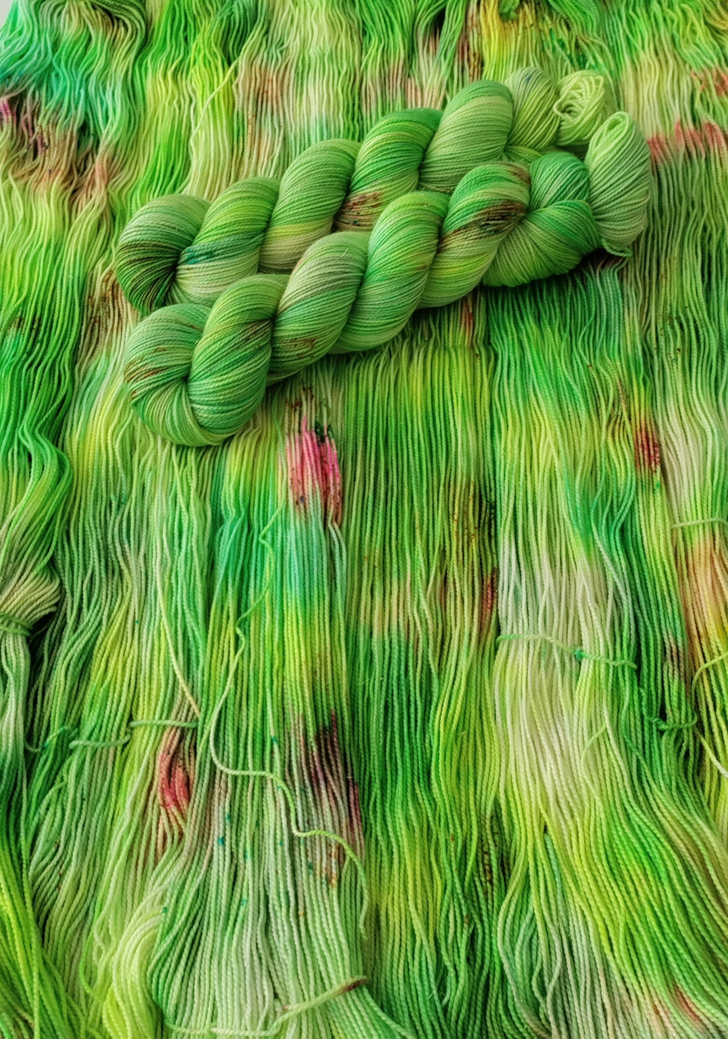 Spirende Forår er et flerfarvet garn i lækre lyse grønne nuancer med skønne speckles i pink, blå, grøn, tyrkis og orange.